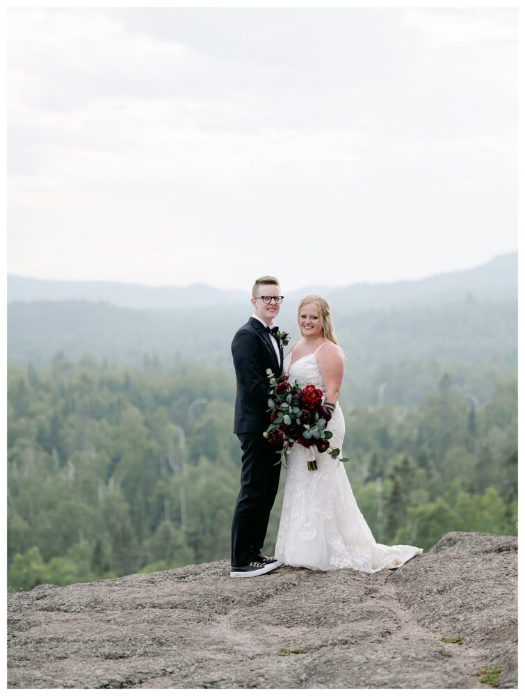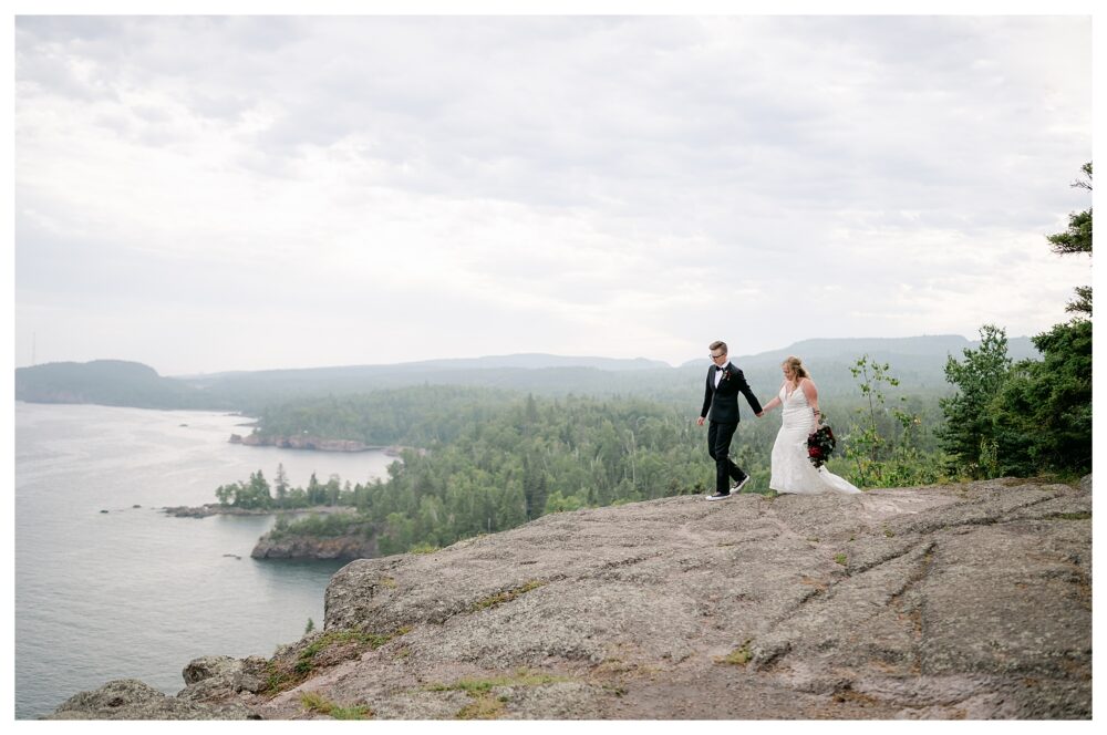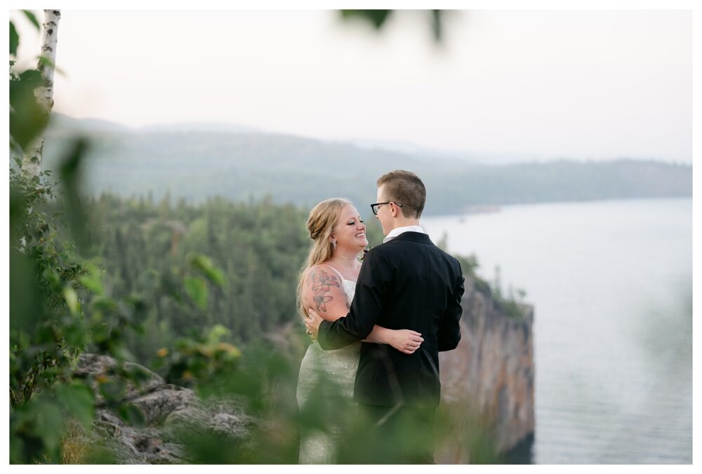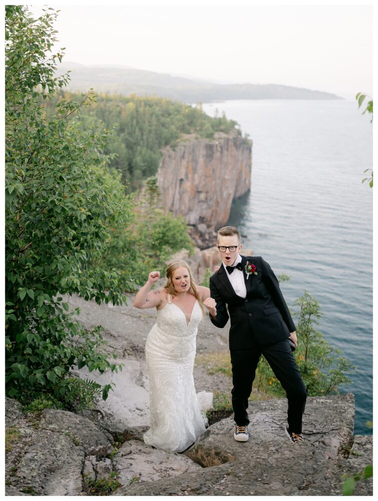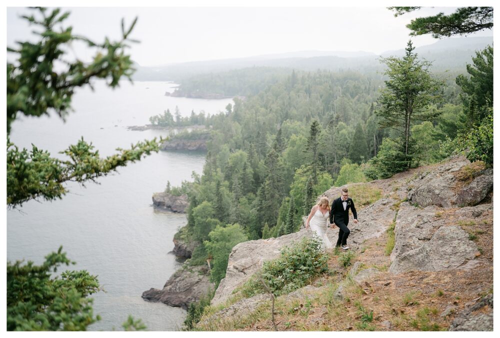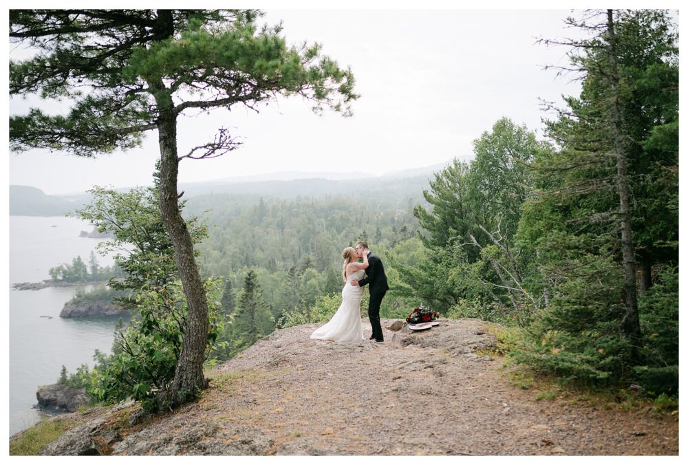 Also, the North Shore was where we had our first hiking trip/getaway weekend together and our first kiss. Tettegouche State Park ended up being the perfect hike for us in our wedding attire and gave us incredible North Shore views. Tettegouche is also conveniently located in-between Klarhet, where we statyed, and Black Beach where we wanted to share our first dance and meal together.