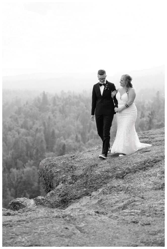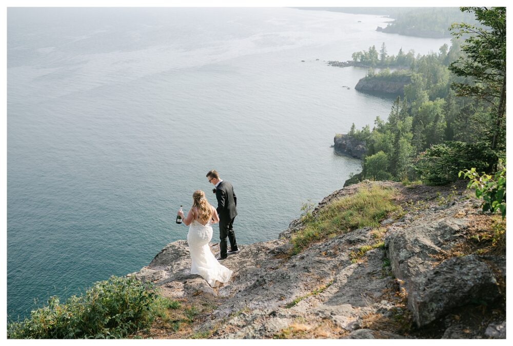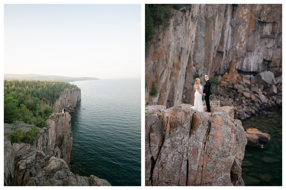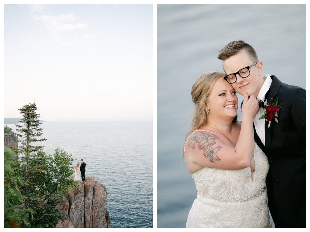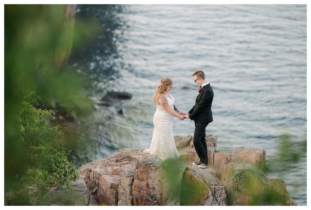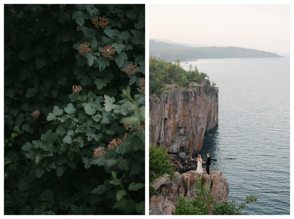 Also, the North Shore was where we had our first hiking trip/getaway weekend together and our first kiss. Tettegouche State Park ended up being the perfect hike for us in our wedding attire and gave us incredible North Shore views. Tettegouche is also conveniently located in-between Klarhet, where we statyed, and Black Beach where we wanted to share our first dance and meal together.