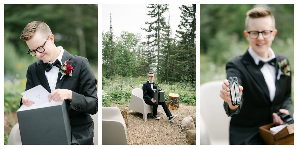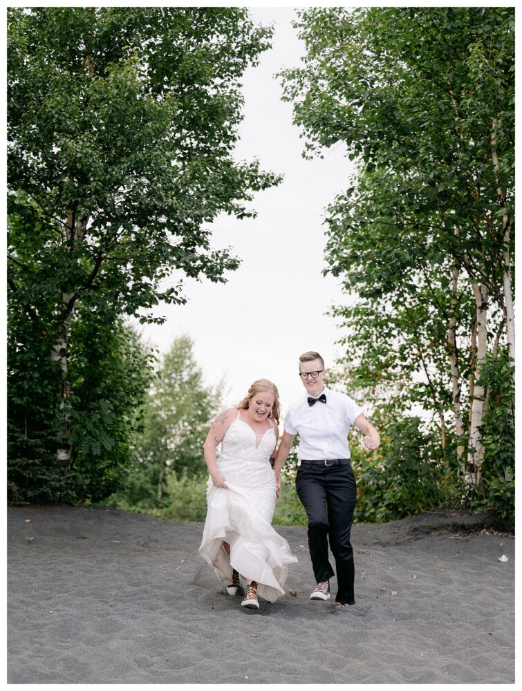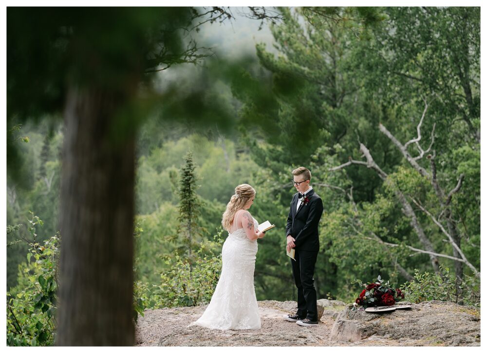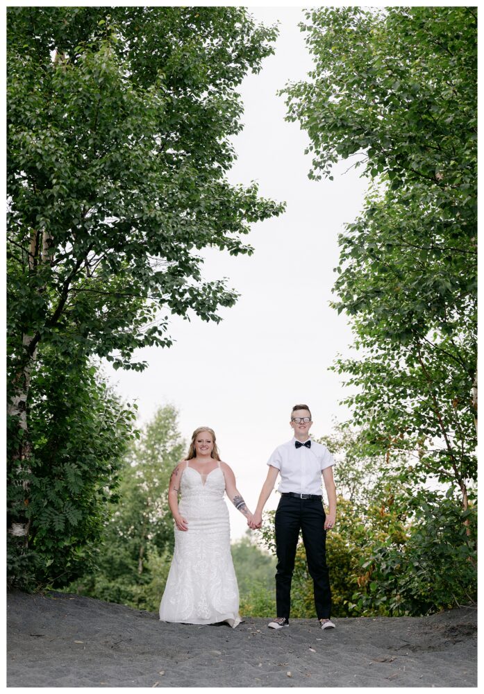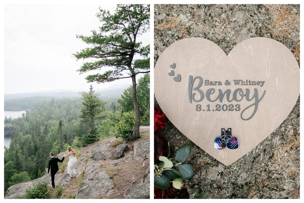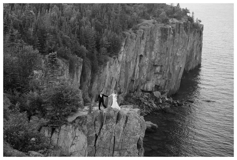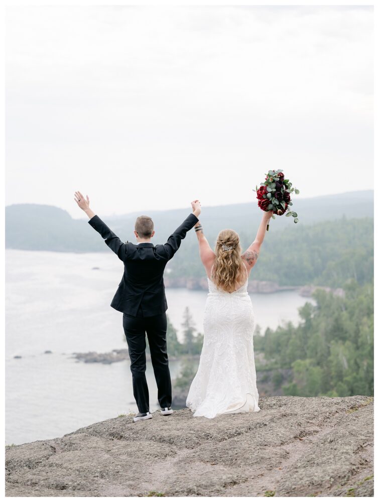 Also, the North Shore was where we had our first hiking trip/getaway weekend together and our first kiss. Tettegouche State Park ended up being the perfect hike for us in our wedding attire and gave us incredible North Shore views. Tettegouche is also conveniently located in-between Klarhet, where we statyed, and Black Beach where we wanted to share our first dance and meal together.