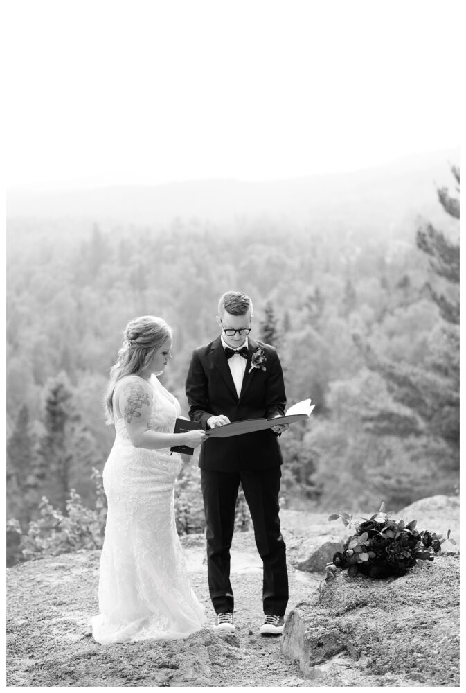 Sara and Whitney wanted to exchange vows in one of their favorite places in Minnesota, Tettegouche State Park on the peaceful North Shore. They chose to elope just the two of them so they could truly be present and enjoy their time together. After a night in an igloo at Klarhet, they headed to Tettegouche for a sweet little adventure along the cliffs of Lake Superior. After they officially were married, and the champagne was drank, they made their way to Black Beach for a little picnic and game of tag. We ended the evening back at Klarhet. Sara surprised Whitney with a song she wrote when she serenaded her with the guitar around a campfire.