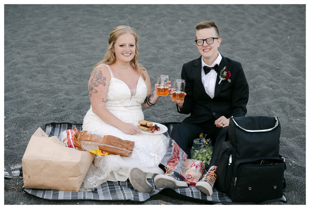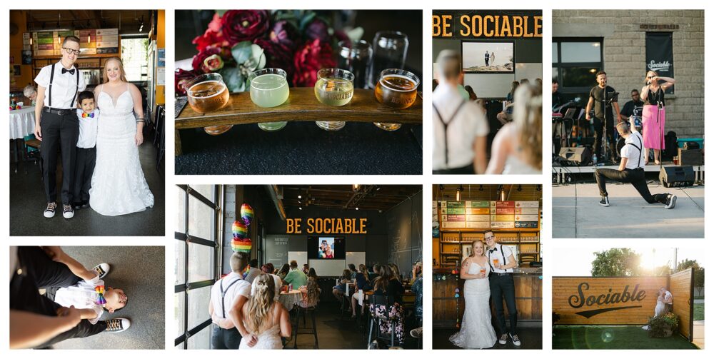 We had our reception at Sociable Cider Werks, where we had our first date, 2 weeks after the wedding. It was enough time to get our outfits cleaned and decorations finished! We played a slideshow of pictures of our lives up to this point and then played the video of our wedding day. We wanted to make our family and friends feel like they were there for the ceremony.