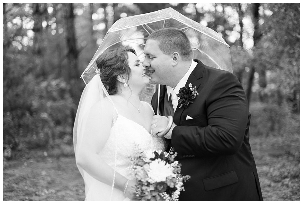 “Our wedding day started off with bang—literally. Thunder, lightening, and pouring rain is what we woke up to. While this is enough to make anybody nervous, we received many words of affirmation about how lucky our day and marriage will be. And that’s exactly what happened. Although the rain continued on and off, we didn’t let that dampen our day. The smiles and laughter were endless as we prepared to commit to one another for the rest of our lives. We wish we could rewind time and relive that day over and over because it was absolutely perfect—even with the tornado sirens going off. We are so grateful that we were surrounded by our loving family and friends as we celebrated the new chapter in our lives.”