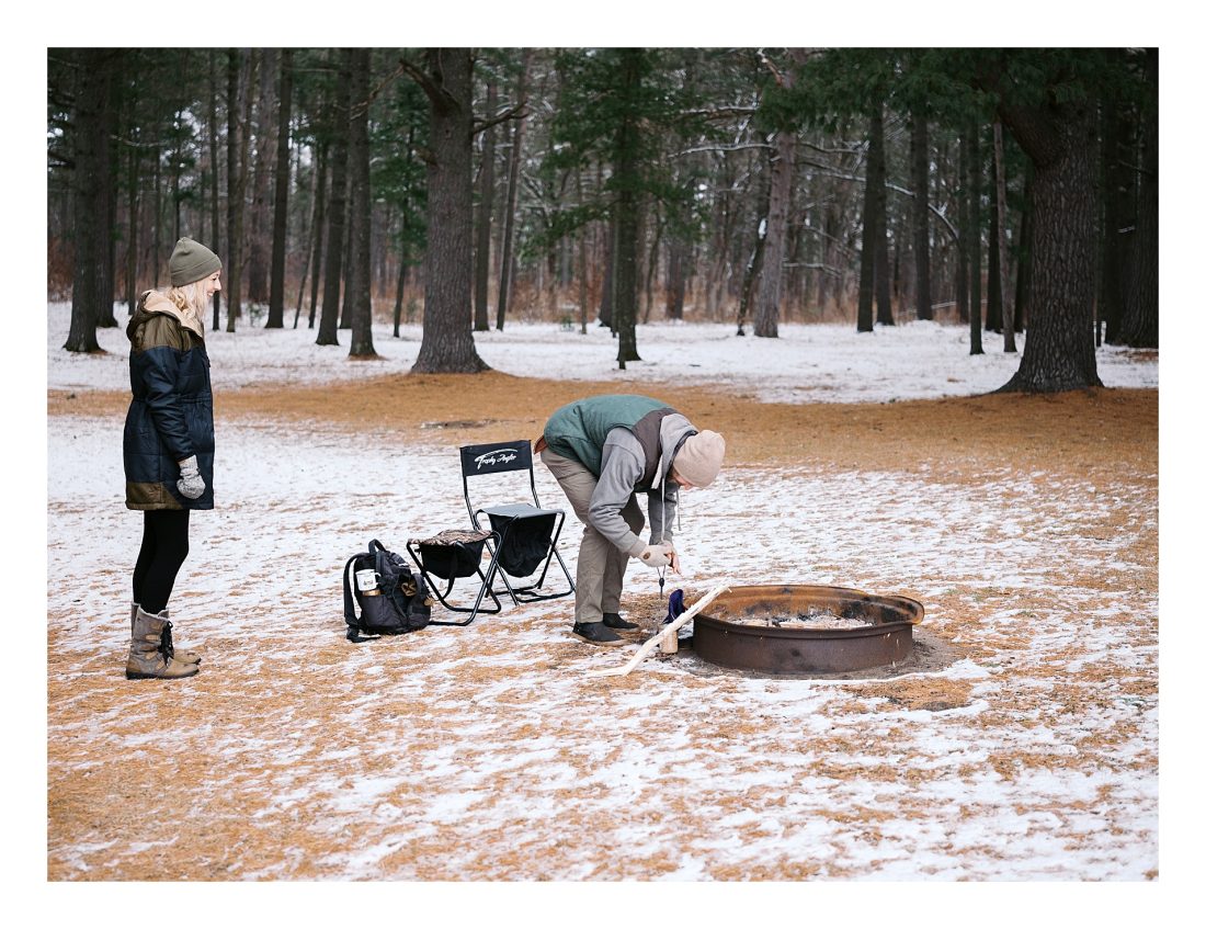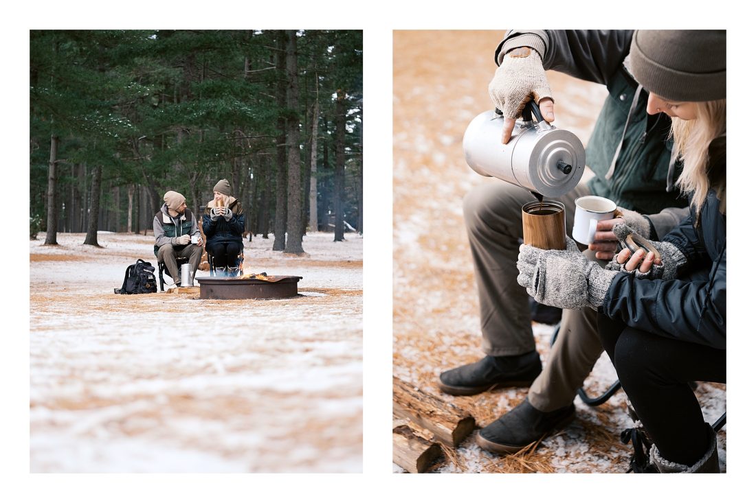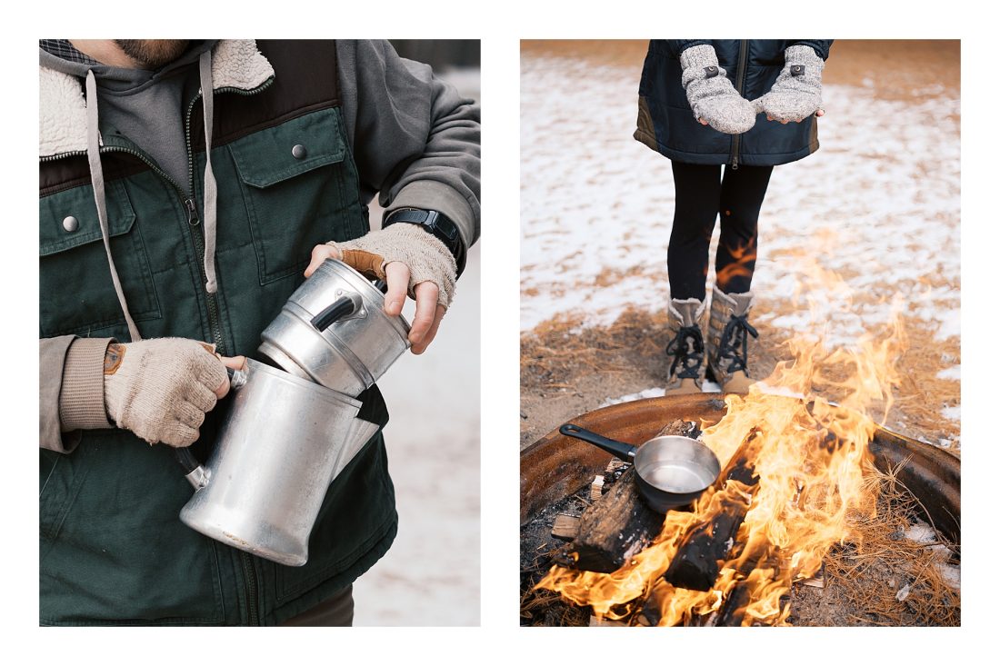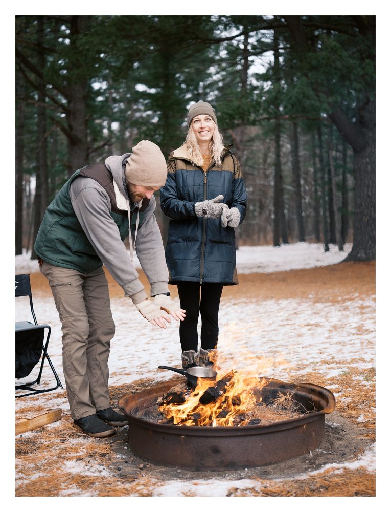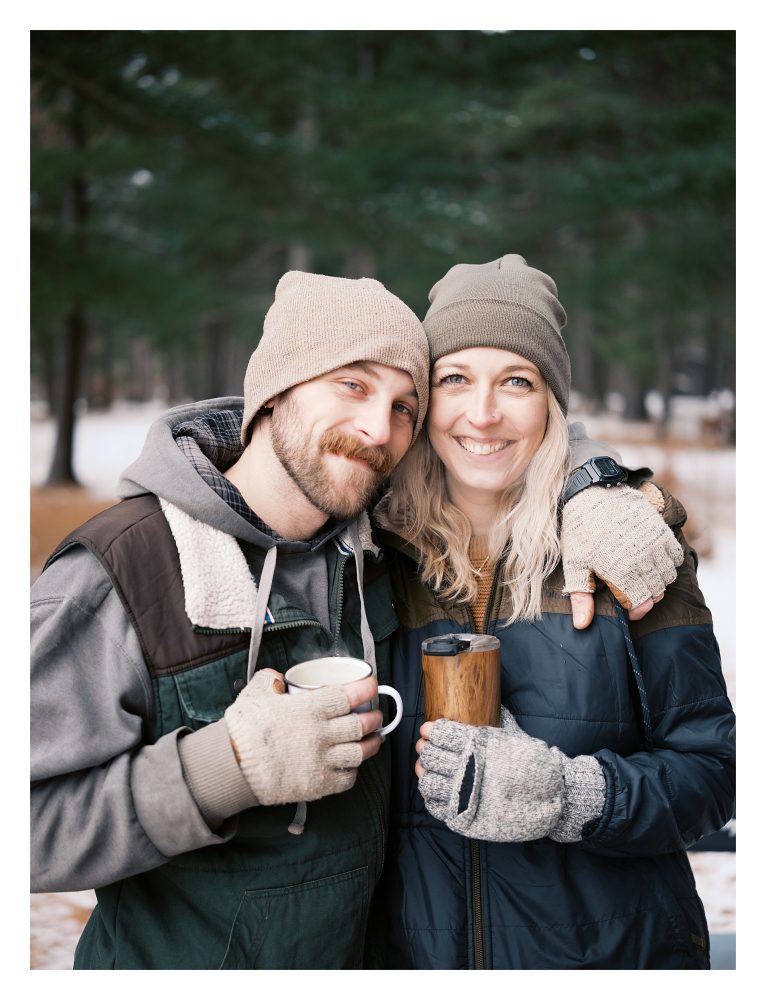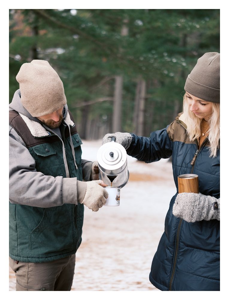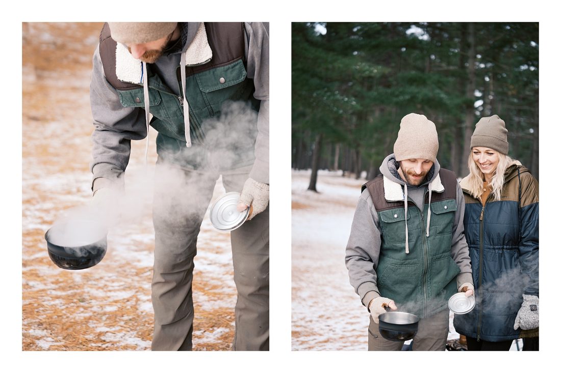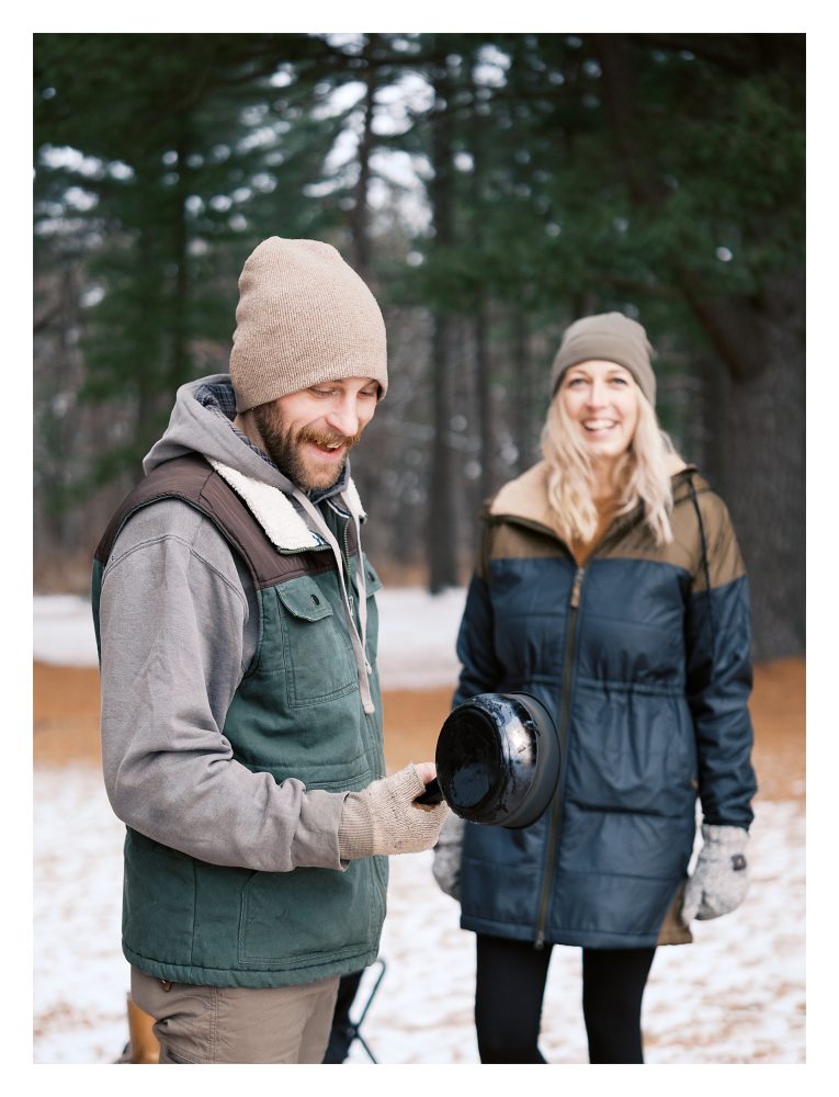 They both love nature, quiet mornings, a good cup of coffee and quality time with one another. We headed out to the woods on a mild Minnesota winter morning and allowed for all of those things to be a part of their documented experience. They started out with a short hike to clear their minds from all outside distractions. Then Trent chopped some wood and started a fire so they could warm their fingers and brew some coffee. This made for the perfect little date as they sipped coffee and shared some laughs.