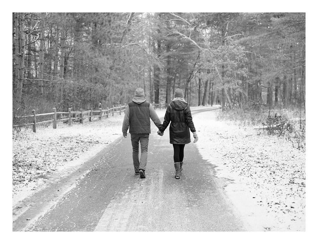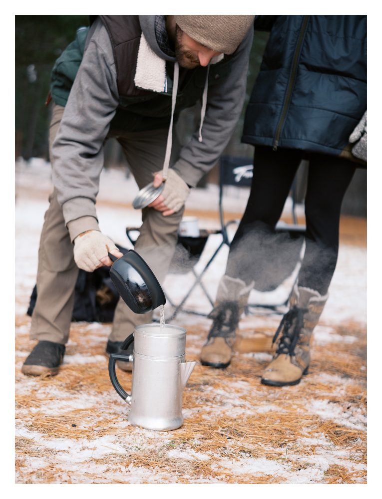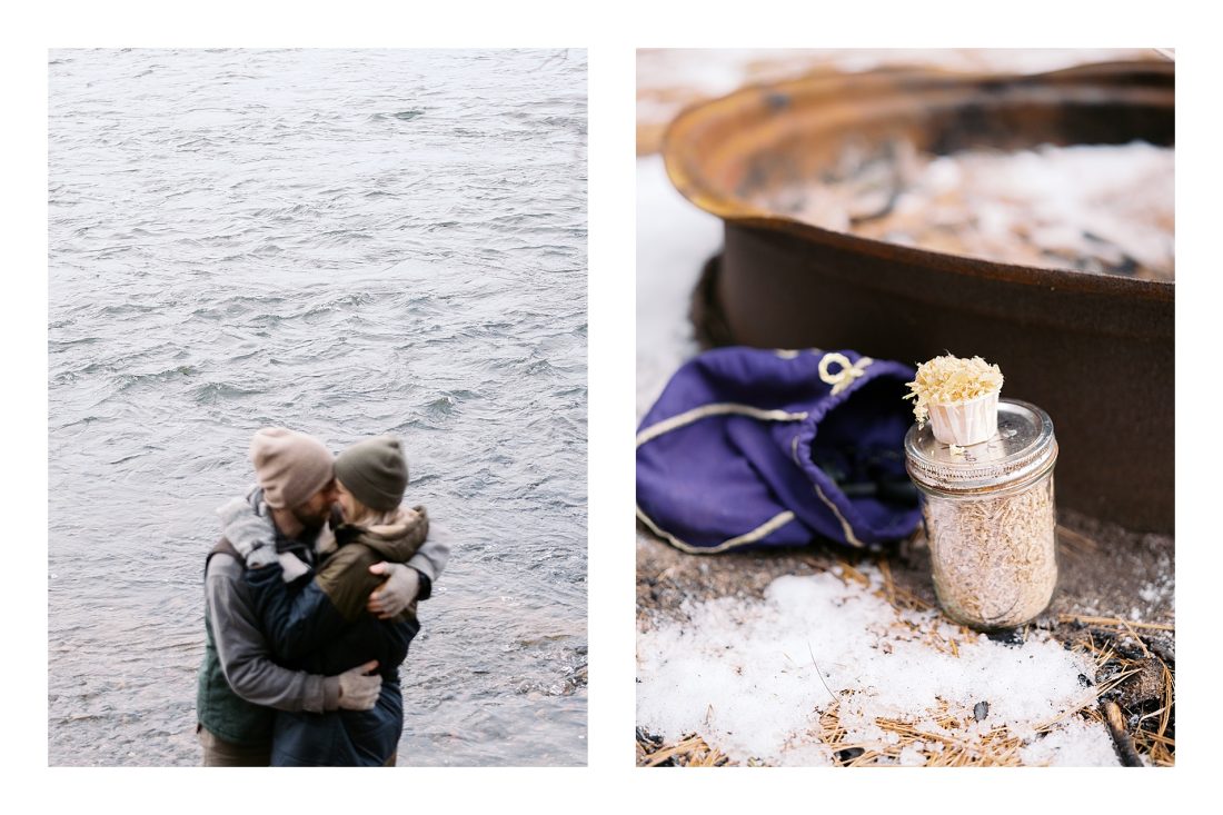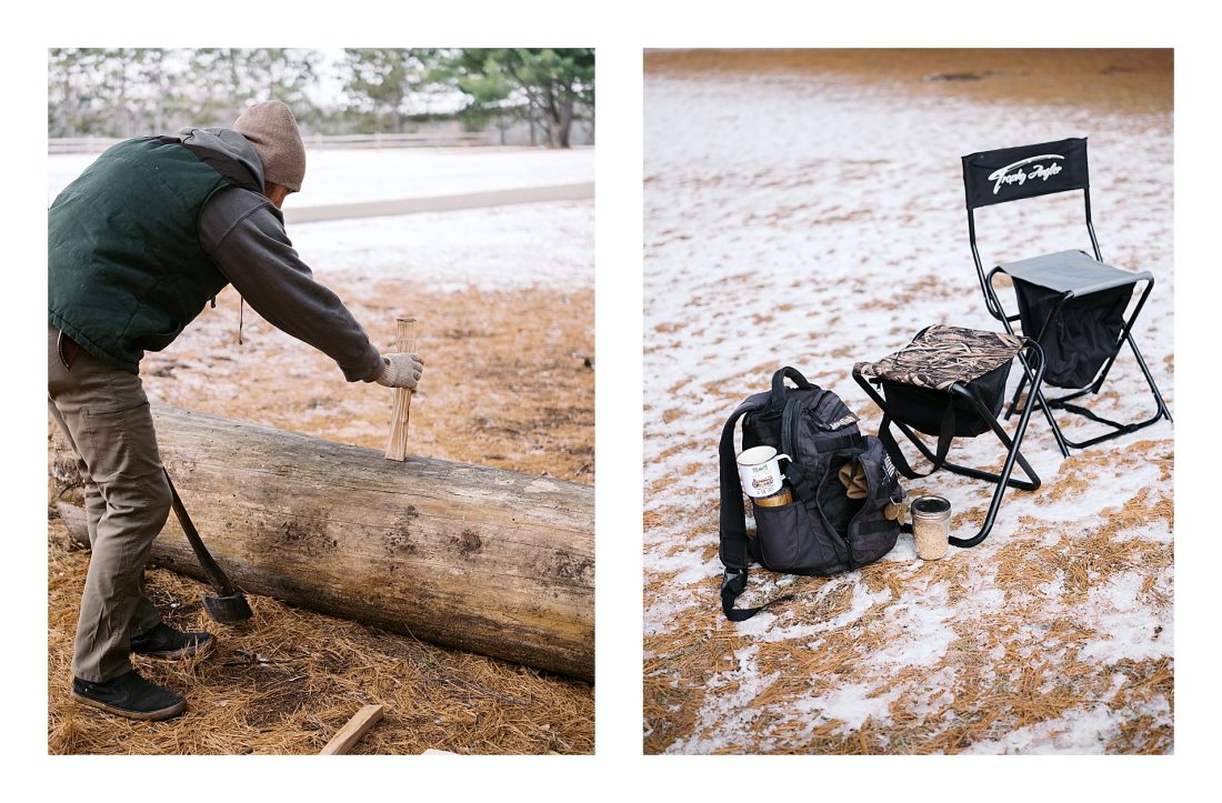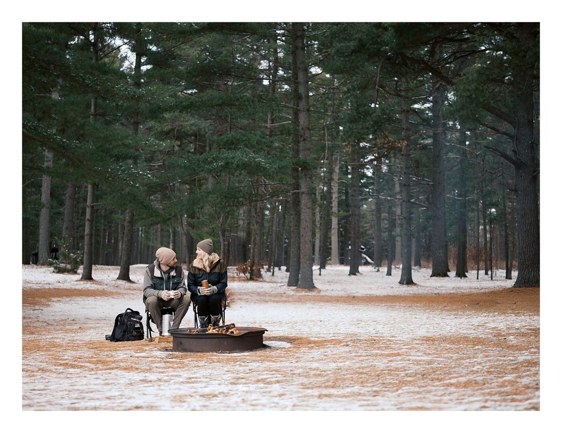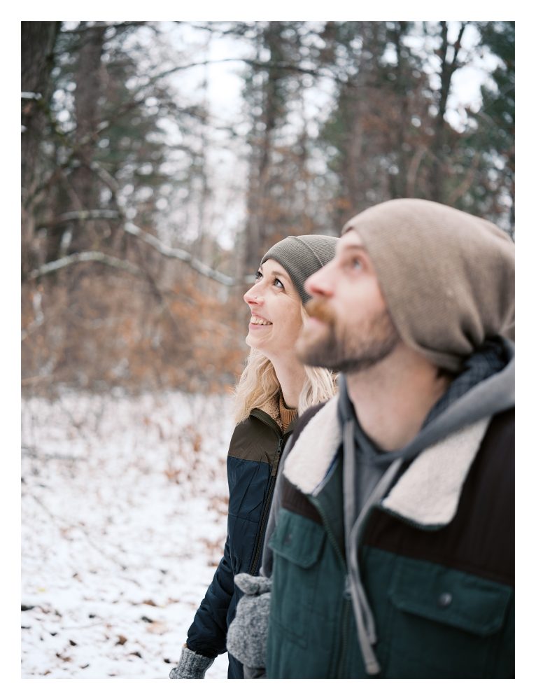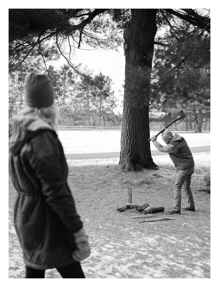They both love nature, quiet mornings, a good cup of coffee and quality time with one another. We headed out to the woods on a mild Minnesota winter morning and allowed for all of those things to be a part of their documented experience. They started out with a short hike to clear their minds from all outside distractions. Then Trent chopped some wood and started a fire so they could warm their fingers and brew some coffee. This made for the perfect little date as they sipped coffee and shared some laughs.